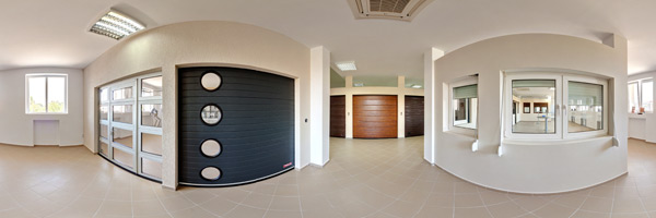 Virtuele rondleiding van industriële sectionaalpoorten en sectionale garagepoorten, buitenaanzicht